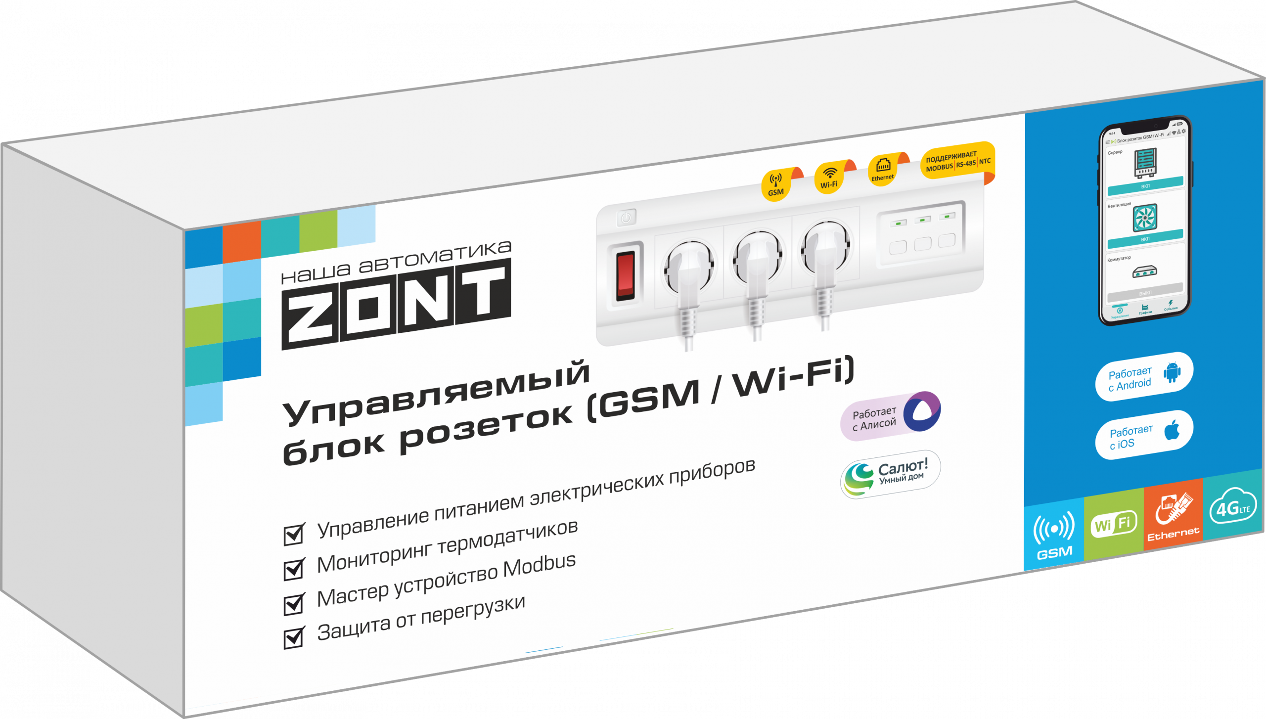 Управляемый блок розеток ZONT GSM/Wi-Fi – современное устройство для автоматизированного управления электроприборами. Это решение идеально подходит для офисов, коммерческих зданий и жилых помещений.