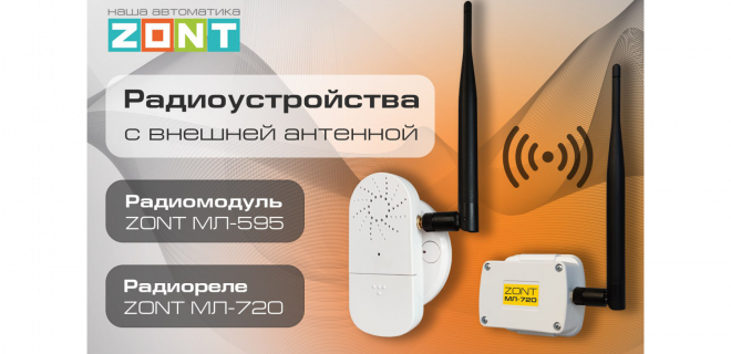 Продолжаем развивать ассортимент радиоустройств ZONT, использующих частоту 868 МГц. Представляем новую категорию: радиомодуль и радиореле с внешней антенной.